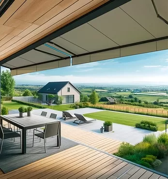 La pérgola Roma opera sin necesidad de motor, utilizando un mecanismo hidráulico de pistones para un ajuste suave y preciso, ofreciendo fiabilidad y control absoluto.