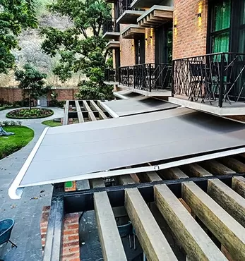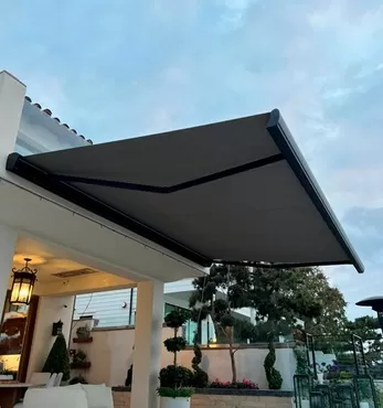 Este toldo incluye mecanismos automáticos controlados por remoto, ofreciendo comodidad y facilidad de uso, permitiendo ajustes sin esfuerzo desde cualquier parte del espacio.